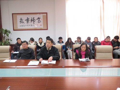 1月9日下午2点半,国产av 在学院会议室召开2012—2013学年第一学期期末学生工作会议,党总支副书记周炎、辅导员李广华、李昭娜老师以及2009级和2010级的各班班长、团支书参加了会议。