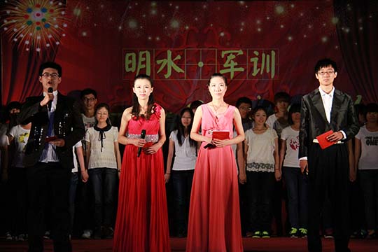 “金秋十月,欢歌笑语”10月20日晚,国产av 与国际交流学院共同举办的2013级军训联欢晚会在明水体育馆隆重举行。