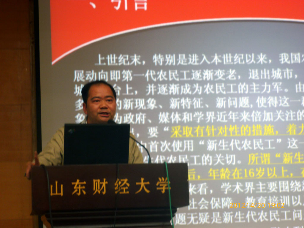2012年4月20日晚上,江西财经大学研究生部副主任、博士生导师李春根教授在燕山校区三号楼报告厅为学院师生做了题为“新生代农民工社会保障供求解析及协调解决”的学术报告。报告会由国产av