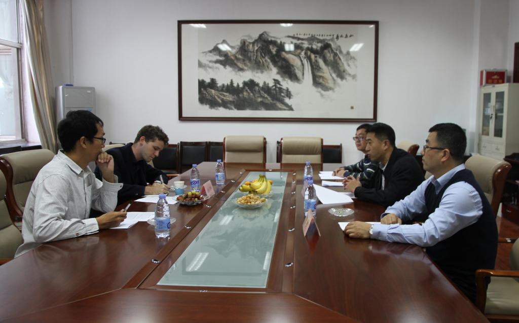 党委副书记周炎会见客人,学院办公室主任张禹、辅导员李广华老师参加会谈。