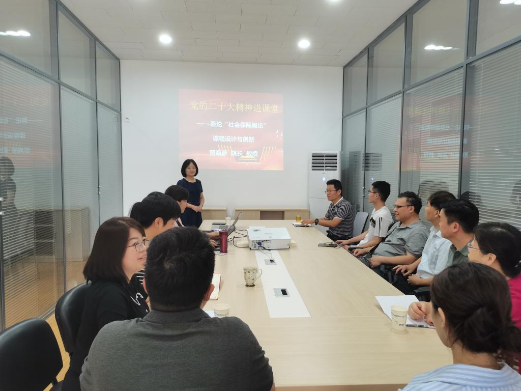为扎实推进学习贯彻习近平新时代中国特色社会主义思想主题教育,6月29日下午,学院院长贾海彦教授在4楼会议室给劳动与社会保障系全体党员教师及部分研究生党员讲授题为《党的二十大精神进课堂——兼论“社会保障概论”课程设计与创新》的主题党课。