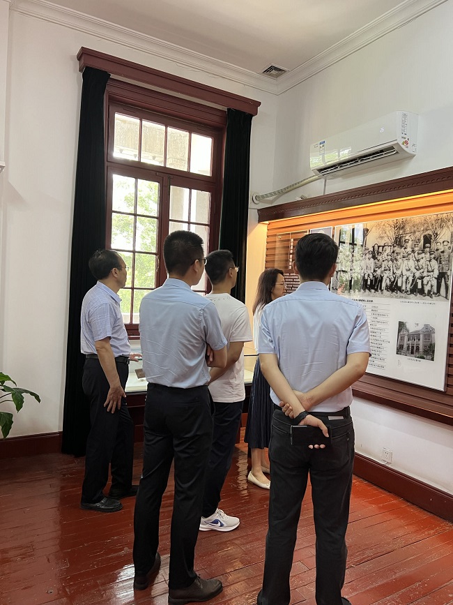 在纪念馆一楼,班子成员还观看了反映中国共产党成立前后,山东地区党组织活动活动情况的图片,特别是一大代表王尽美、邓恩铭事迹介绍,以及新中国成立后济南市工商业经济发展情况。
