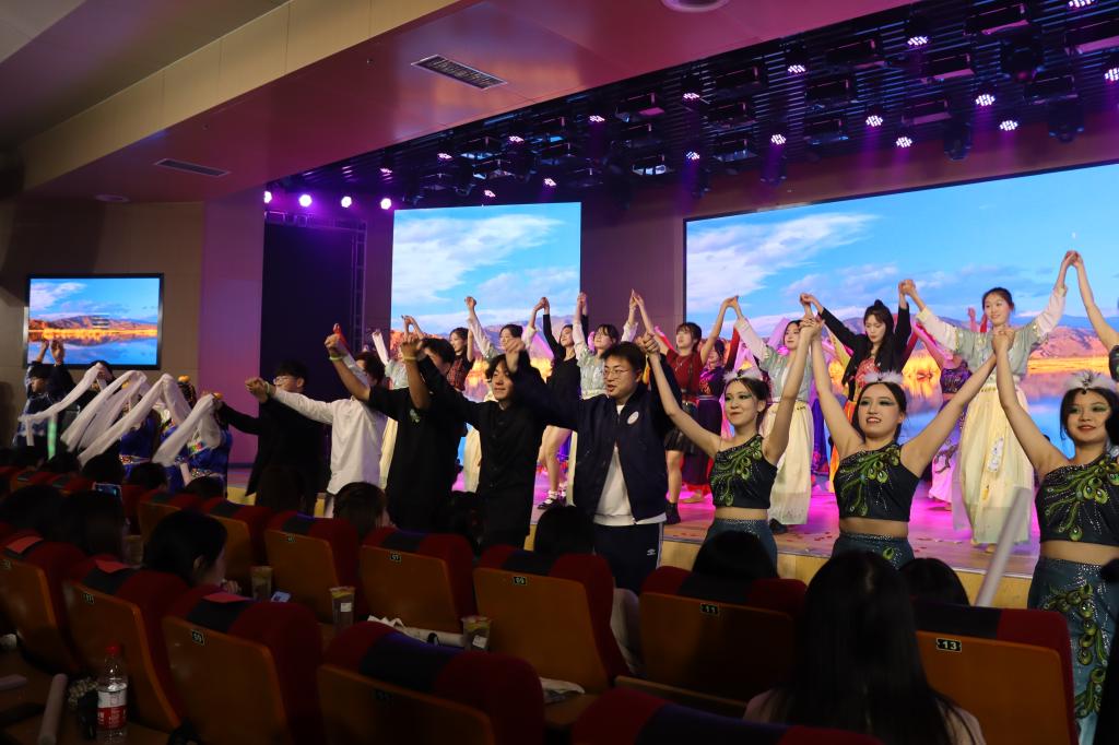 晚会来到第三章:春和。相声《双字意》,2022届优秀校友陈广昊与两个搭档一捧一逗,将我国国粹融汇进诙谐的逗趣中,生动有趣,现场欢声笑语不断;民族大联欢《美丽中国》,民族舞者们身着各具特色的民族服饰,在激昂澎湃的歌声中翩翩起舞,婀娜的身姿宛若一朵朵绚烂绽放的民族之花。最后,晚会在大合唱《相亲相爱》的亲切旋律中圆满落幕,演唱者们的歌声沉稳与奔放并存,传递给同学们希望与爱意。