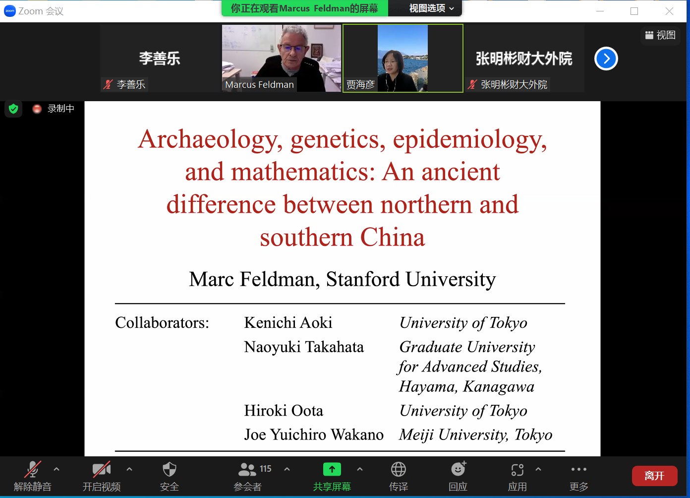 此次讲座采取了同声传译的翻译方式,借助zoom软件同时提供中英文两个频道。Feldman教授的精彩演讲引起了与会师生的强烈兴趣,大家与Marcus W. Feldman教授进行了充分的互动交流。