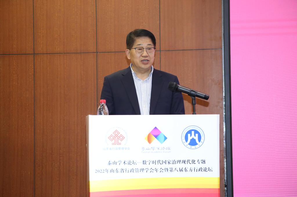 山东省政府参事、山东省行政管理学会会长张述存研究员在致辞中介绍了山东省行政管理学会在国家课题研究、决策咨询服务、高端论文发表等方面取得的突破性进展,表示学会将紧紧围绕学习贯彻党的二十大精神,进一步充分发挥学会作为行政管理新型智库的突出优势,探索建立健全更加适应新时代行政管理研究需求的体制机制,多提出一些更具有针对性、现实性和可操作性的政策建议。