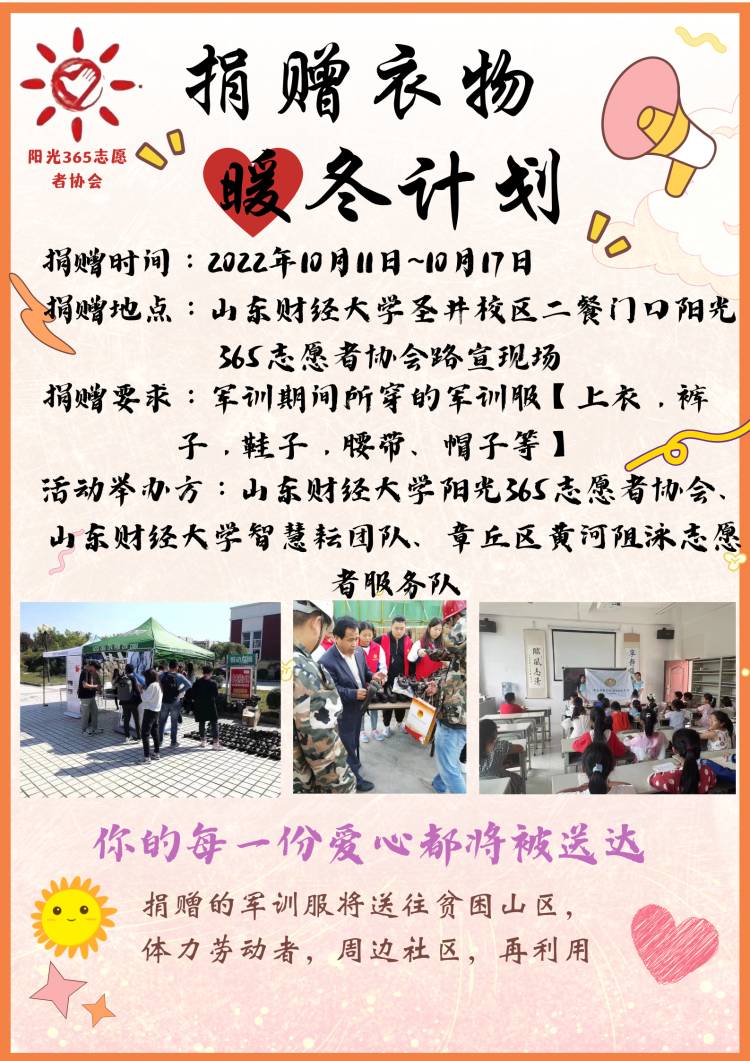 社团阳光365志愿者协会于10月11日至17日在圣井校区、燕山校区成功举办军训闲置衣物捐赠活动。