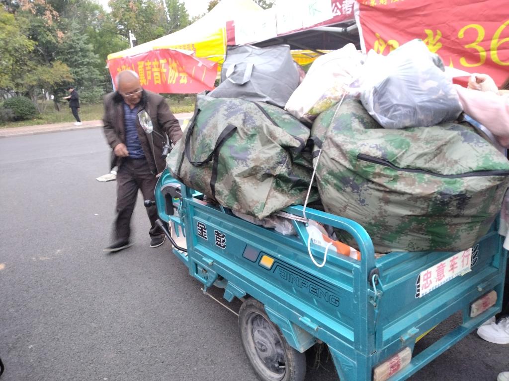 智慧耘团队,章丘区黄河阻游泳志愿服务队合作回收军训闲置衣物,此次活动通过路宣和扫楼相结合的方式,在向同学们宣传的同时,也克服了“社恐”,锻炼了沟通能力。此次活动的目的在于将同学们的爱心传递到村民心中,将每一套衣物温暖他人一冬。同学们献出的不仅是自己满载回忆的军训服,更是将一份份爱心无限的传递,让更多的贫困百姓感受到社会的温暖。