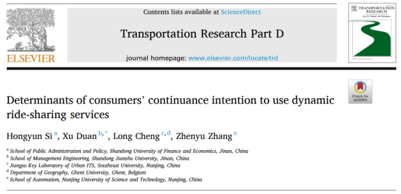 司红运副教授在交通和环境领域权威期刊发表3篇论文
