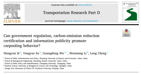 交通部门碳排放的持续增长促使世界各地的交通和环境政策制定者开始关注共享出行(Shared Mobility)。拼车是一种典型的共享出行方式,被广泛认为可以提高车辆资源利用效率并减轻交通拥堵和空气污染。在第一项研究中,作者试图揭示政府监管、碳减排认证和信息宣传对个体拼车行为的影响。研究发现,政府监管和碳减排认证可以显著提升用户的拼车意愿;信息宣传不仅对拼车意愿产生积极影响,而且可以促进拼车行为。有趣的是,政府监管对女性、高教育水平和年轻群体用户的影响更为显著。碳减排认证可能会对女性用户的拼车行为产生负面影响。信息宣传能够有效提升年长用户的拼车意愿。
