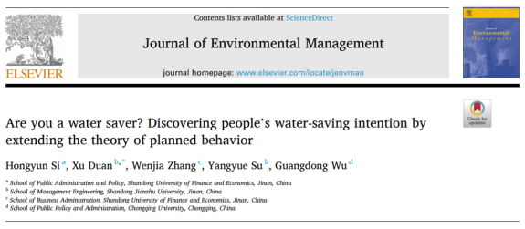 在第三项研究中,作者关注并调查了居民的节水行为。在过去的一个世纪,全球用水量增加了六倍,联合国预计这一数字将以每年约1%的速度继续增长。然而,在过去的20年中,陆地储水量一直在以每年1厘米的速度下降,这种下降可能会在未来几个世纪持续下去。到2050年全球将有超过50亿人缺水,水危机已成为21世纪世界面临的最大威胁之一。通过对中国“泉城”济南市居民的节约用水行为进行调查,发现济南市民具有强烈的环境关注程度和节水意愿。较高的环境关注和风险感知可以显著提升居民的节水意愿,信息宣传对居民的节水意愿具有显著的调节作用。最后,论文针对性提出了引导居民节水行为的政策建议和管理启示。
