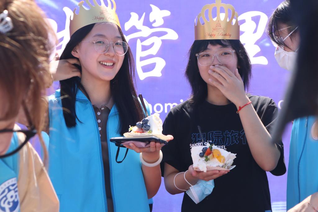 学院党委书记张建,院长贾海彦,党委副书记许薇,学工办主任、2021级辅导员张辉,2020级辅导员韩步彤,和2022级新生辅导员张志斌来到圣井校区,了解迎新保障工作和新生报到情况,慰问参加迎新工作的学生志愿者,并与新生亲切交谈、合影留念。在迎新接待点,张建提醒学院要做好疫情防控各项工作,关注新生学习生活所需,通过精彩丰富的校园活动帮助大家更快、更好地适应大学生活。学院领导为今日过生日的新生与代班学生送上生日祝福,叮嘱她们要在接下来的学习中努力钻研,在生活中不断增进与同学们的友谊,在美好的大学时光中不断成长进步。