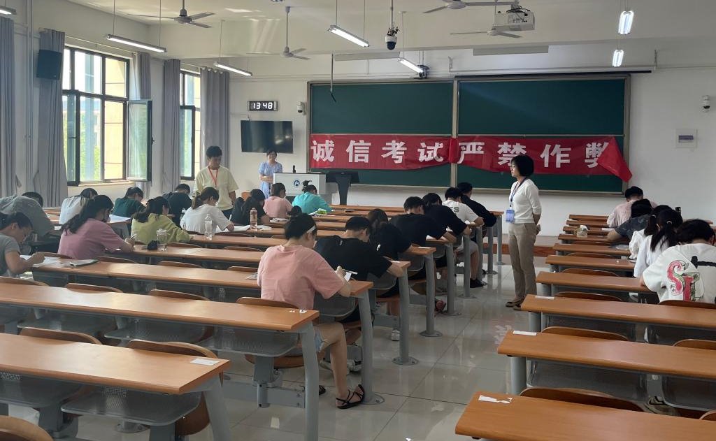 学院组成由党委书记张建和院长贾海彦任组长,院领导班子成员、学团工作人员、系主任、教学管理人员等组成的巡视工作小组,检查本学院学生所在考场的考试组织及考场纪律情况。学院每个考场都贴有诚信考试宣传标语,提醒同学们自觉遵守考试纪律,公平参与考试竞争。