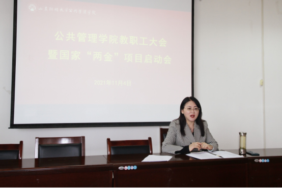 最后,张红凤院长就国家“两金”项目的申报工作进行了重点强调和部署。她首先传达了学校国家“两金”项目启动工作会议的精神,梳理了学院最近几年课题的申报情况,分析了学院科研工作取得成绩和面临的任务与挑战。她强调:一是要高度重视科研工作的地位,“两金”项目作为科研工作的重要组成部分,地位举足轻重。一流大学的建设,需要一流学科的支撑,一流学科离不开一流科研。二是要正确理解把握科研工作的导向性。虽然国家提出了“破五唯”的评价体系,但并非是放弃科研,而是更加注重高水平成果,更加注重质的提升和贡献度,今后学校与学院将加强过程评价和结果评价相结合。三是要超前谋划、有的放矢、准确发力、高效作为,结合自身实际和优势领域,制定切实可行的申报实施计划和方案。呼吁学院新入职的博士、承担过国家级课题但目前无在研课题的教师以及承担过省部级课题且无在研国家级课题的教师,必须申报国家两金项目,其他教师也要根据自身情况积极申报。学院将适时聘请校内外专家予以课题申报方面的全过程指导。