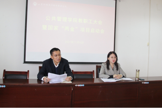 举行教职工大会暨国家“两金”项目启动会,会议由张红凤院长主持。