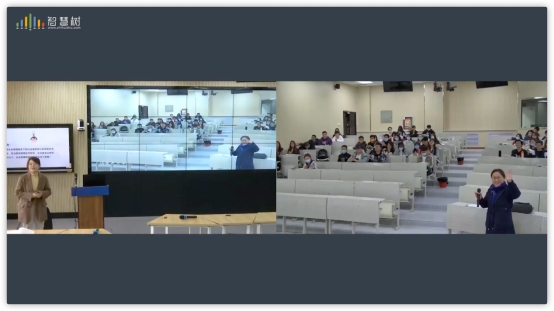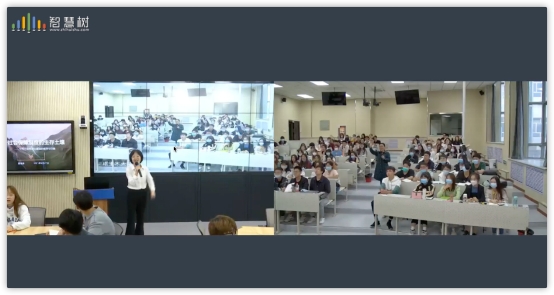 学生和塔里木大学学生处在现代化的远程直播互动智慧教室里,通过“智慧树”远程直播互动调度系统,根据课堂教学需求即时切换两校课堂画面,塔里木大学的学生不仅能实时听到课程内容,还能举手发言,与国产av