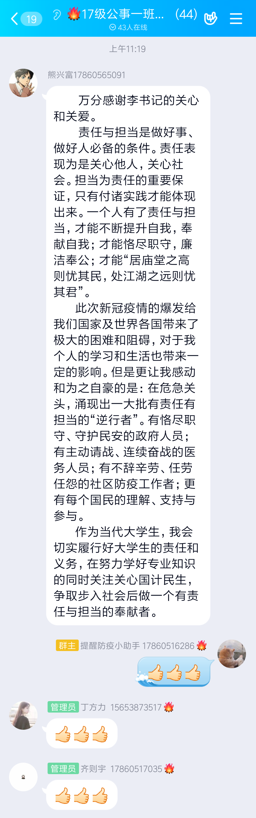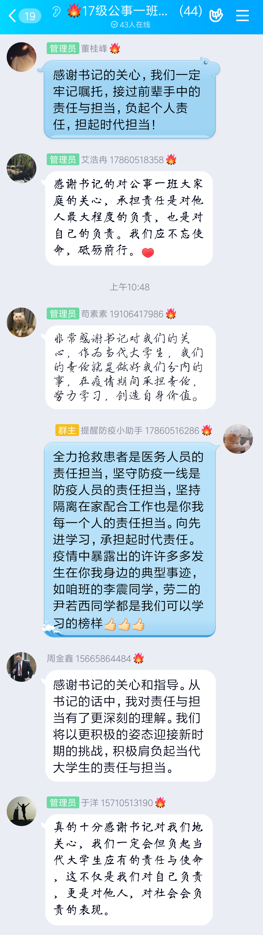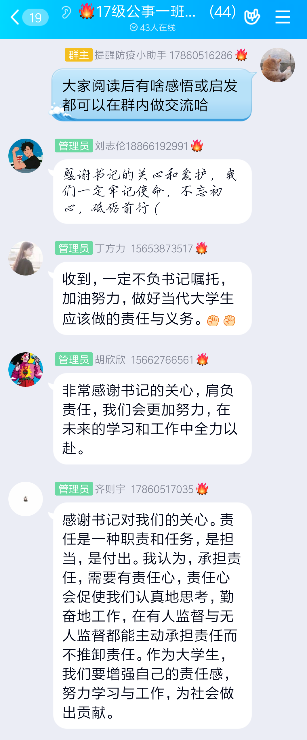 李国强书记真挚的回信是对公管学子的极大激励,在同学们中引起了热烈反响。大家纷纷表示,青年的责任与担当不仅是提升自我,磨砺成长的保证,更是助力国家打赢疫情防控攻坚战的重要力量。公管学子定会牢记李书记的嘱托,努力学习,实现自身价值,砥砺前行,让青春焕发出绚丽的光彩。