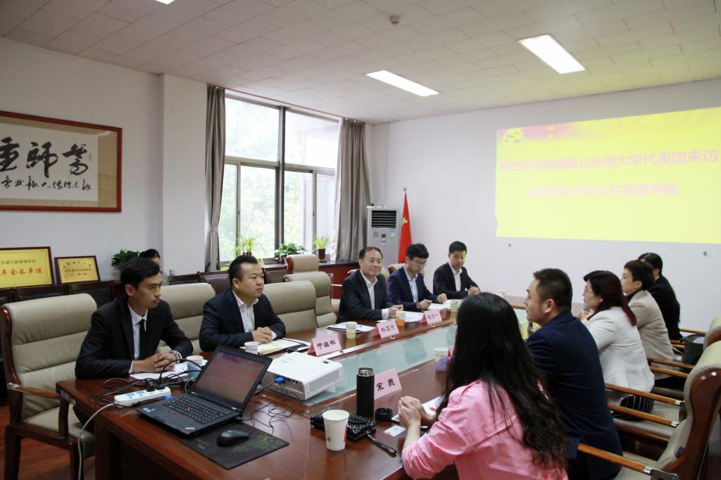 访问韩国国立全南大学。随后,双方就拓宽合作专业领域、学生留学、游学、教师互访互聘等方面进行了深入的沟通和交流,对进一步加强人才培养、师资交流、项目合作等达成了初步共识,为下一步的深入合作奠定了坚实的基础。