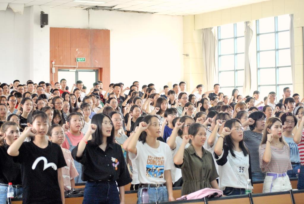 讲话结束后,进行了18级全体新生宣誓环节,誓言慷慨激昂,道出了新生们勇于担当,奋发进取的心声,鼓舞了新生们的士气。