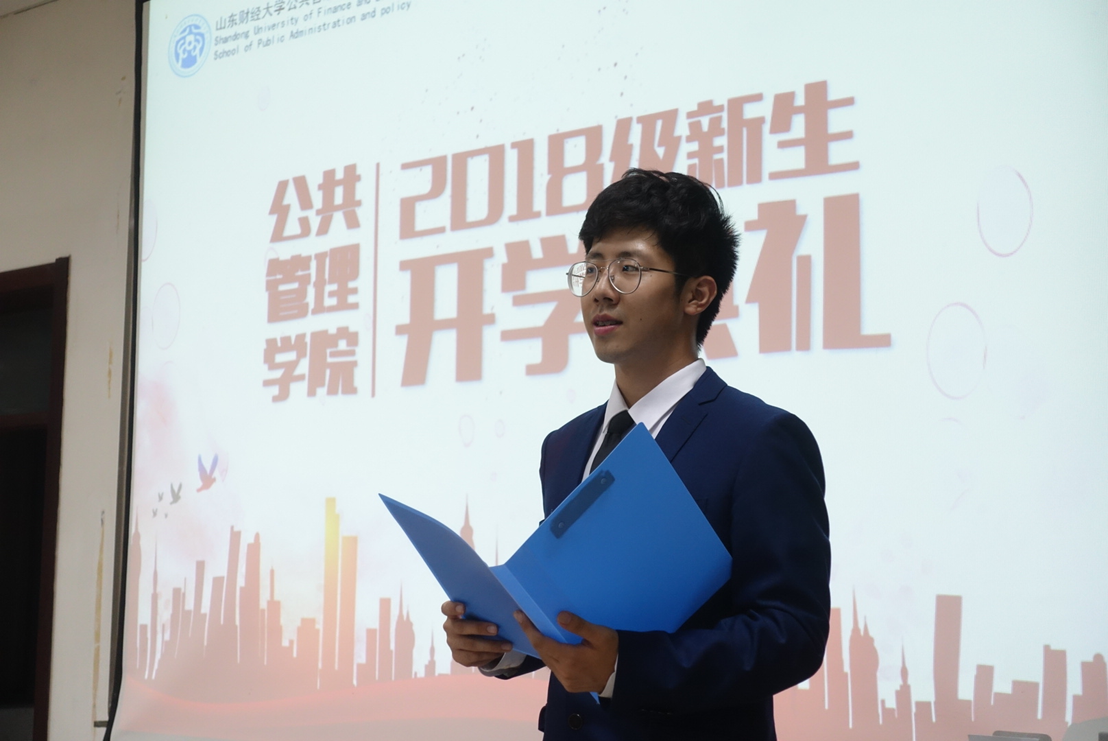 2018级本科生开学典礼在明水校区5201隆重举行。 院长张红凤、党委书记李国强,党委副书记周炎、吕晓燕,副院长贾海彦、路军,劳动与社会保障系主任罗微,就业办主任、辅导员李旭日,辅导员韩步彤出席,2018级全体新生以及2017级部分同学代表参加了开学典礼。本次典礼由党委副书记吕晓燕主持。