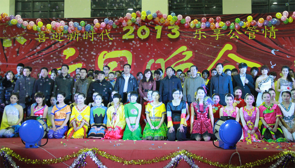 晚会以“喜迎新时代,乐享公管情”为主题,以开场舞《花开盛世》拉开帷幕。接下来的器乐合奏《世上唯一的花》将中国民族器乐的源远流长与流行音乐的时尚动感相融合,生命的歌者把各种器乐的音符碰撞成了一首动人的诗,伴着观众的掌声不断回响。凝重雄浑的诗朗诵《启航2013》带领我们回顾了我们伟大祖国昔日的坎坷与辉煌,翘首期盼来年的美好与精彩;由各地区、民族的特色歌曲、舞蹈组成的民族大联欢《中国美》将来自祖国大江南北的同学们的心紧紧的联系在了一起;动感十足的爵士舞蹈《回来吧,坏坏的你》、风趣幽默的小品《大学爱情》、热情洋溢的音乐剧《我的大一》等博得观众的阵阵掌声。晚会节目丰富多样、异彩纷呈。晚会在一首温暖的《相亲相爱》中圆满结束。