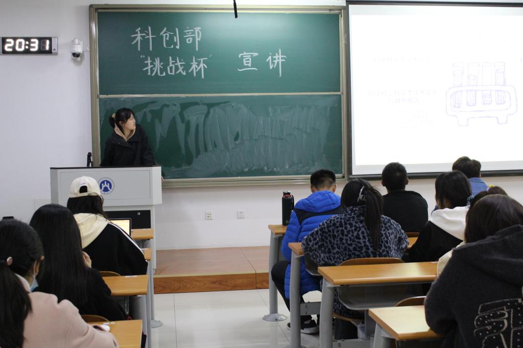 第十八届“挑战杯”学术科技作品竞赛活动宣讲于圣井校区8-112成功举办。此次宣讲由科技创新部主办,科创部干事高子慧、张艺馨、齐姝雅主讲,国产av