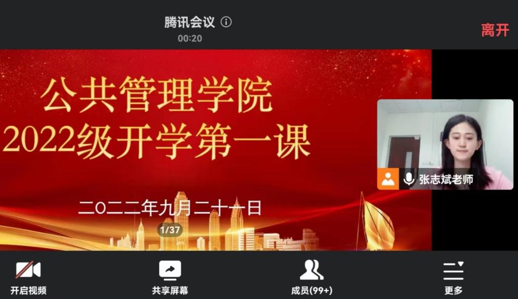 于9月21日上午9:00通过腾讯会议召开了新生开学第一课。会议由2022级辅导员张志斌老师主持,2022级全体新生参加。