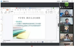 (通讯员 程鹏、刘淼 摄影 井钦磊、孙鸿儒)为深入做好大学生就业指导工作,让学生感受真实的面试环境,积累临场经验,提高应变能力,12月4日下午,学院首届模拟面试大赛成功举办。本次大赛依托腾讯会议平台,采用线上的方式举办。担任面试评委的有学院老师徐宏、张宝峰,三一重工股份有限公司人力资源部刘禄,中交第一航务工程局有限公司人力资源部赵云鹏,字节跳动科技有限公司人力资源部石甜甜,中公教育山东研究院黄胜民、李睿。