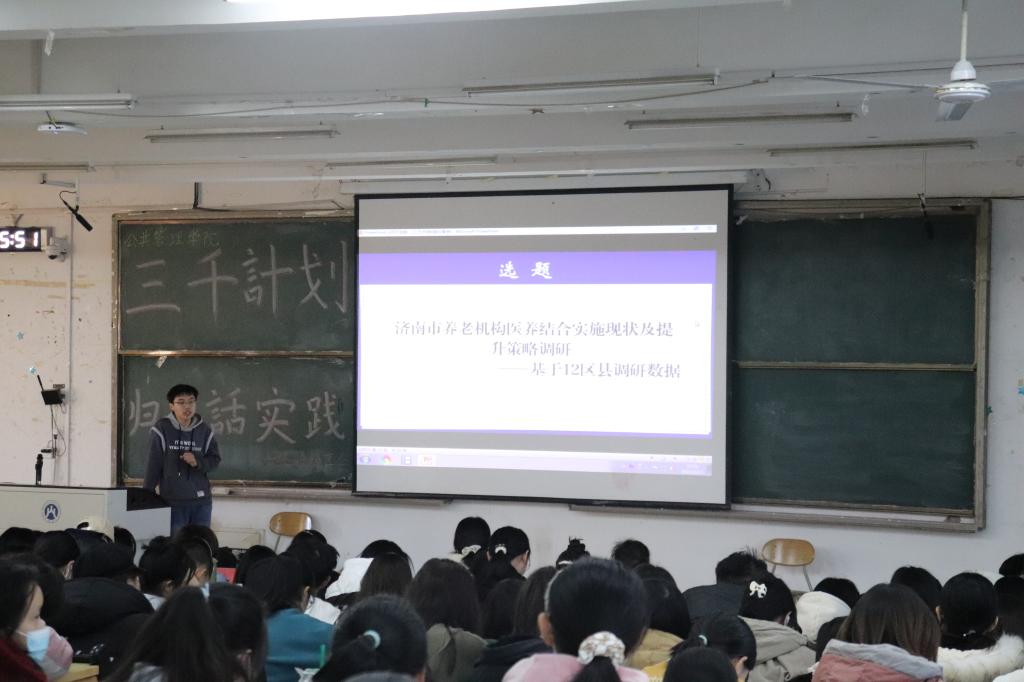 最后,实践创新部副部李吉超为大家介绍如何将实践报告运用到实践之中。他通过一次真实选题,增进同学们对“三千计划”内容与流程的具体认知。他强调,一个优秀的选题不但要结合时代热点,而且需要明晰其发展方向;李吉超着重讲解了如何完成一份优秀的调研报告并将成果进行转化。