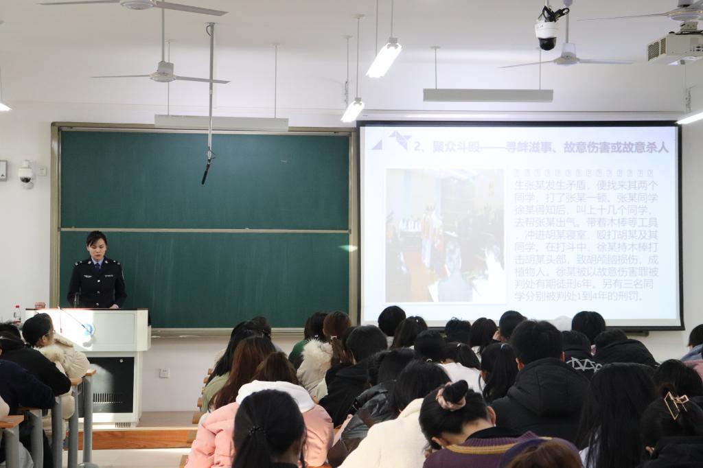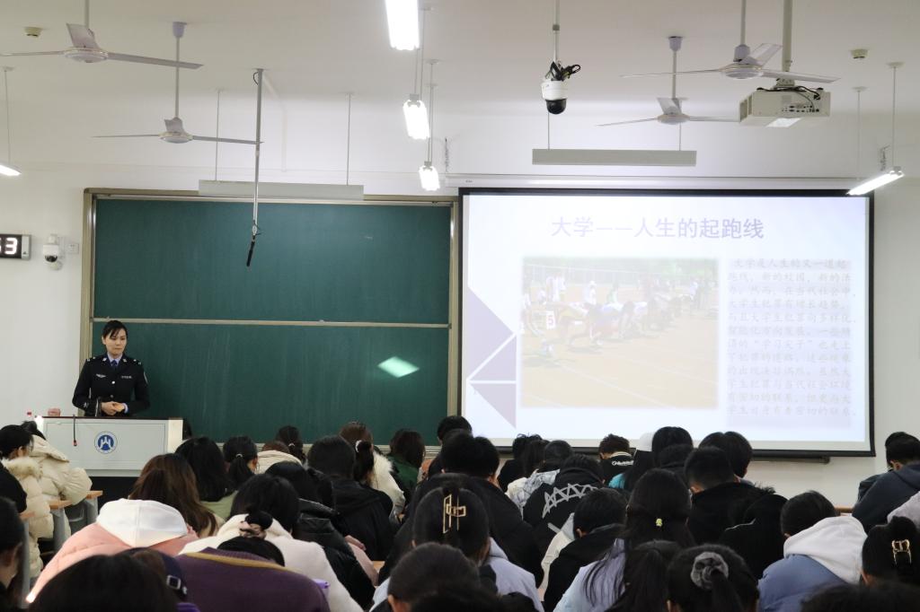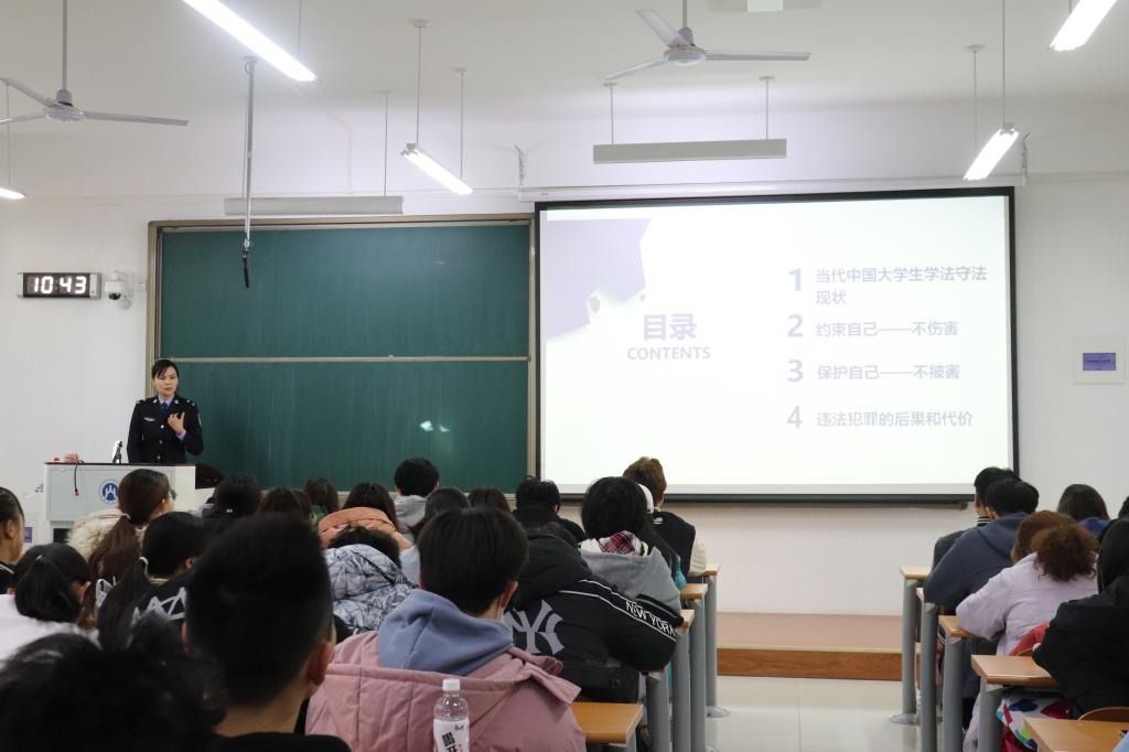 在普法宣讲后,四位警官根据他们在警局的工作经验通过法律宣讲与案例咨询一一解答了同学们的问题。殷航警官强调了大学生树立法律意识的重要性,并为大家解答了一些大学生应当遵循的基本法律法规;于子涵警官通过生动鲜活的真实案例和幽默风趣语言为大家讲解了大学生违法犯罪所带来的严重后果,就现阶段大学生上当受骗和违法犯罪的现状、特点提出预防建议。她强调大学生要加强自我保护和法律意识,不要轻信陌生人,谨防诈骗。他们在咨询中提醒同学们要大学生要主动去了解法律知识,与人和谐相处,不打架斗殴,做知法、懂法、守法的好公民。法律宣讲与案例咨询这两个互动环节,同学们积极参与,提出有关法律法规方面的疑问,他们耐心回答并与部分同学进行单独交流,为他们答疑解惑,让同学们对相关法律知识有了更深的了解,增强了同学们的法律意识。