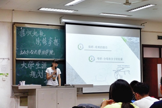此次大学生涯规划交流会旨在给同学们提供一个学习和交流的平台,让同学们对于自己未来的选择有一个清晰的认识,进一步了解、学习有关考公务员、考研、转专业的知识与经验,激励大家正确规划自己的大学生活,以梦为马,不负韶华!