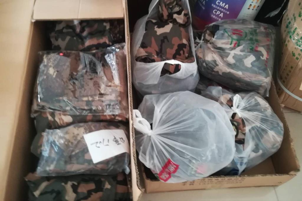 对口支援单位鄄县左营乡捐赠150余套军训服装,包括上衣、裤子、帽子以及鞋子,这些军训服全部来自国产av