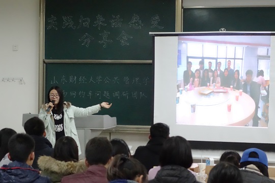 分享会由实践创新部副部长张耀政主持,他首先向同学们介绍了学校暑期社会实践活动“三千计划”的具体内容。随后,李恺鑫介绍了“城风团队”对济南网约车问题的调研情况,利用视频展示了“城风团队”整个社会实践过程,并围绕着“济南网约车问题”讲解了调研团队跟随网约车调研过程中遇到的困难和经历感受,阐述了实践活动的意义,分享了成员们集体合作的快乐。闫梦真和姜冲分别介绍了团队对“阳信县精准扶贫项目绩效”、“烟台市农村饮用水安全问题”的调研的情况,与同学们分享了调研过程中为克服语言障碍、居住问题所做出的努力以及村民们对调研活动的支持所感受到的温暖。三位队长通过精心制作的PPT课件,向同学们详细的讲解了组建队伍、确定课题、立项策划、实地调研、导师指导、调研报告的撰写等实践调研过程。分享了实践活动中的收获,通过自身体验向新生们提出了改进意见和建议。活动最后,国产av
