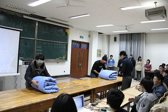 活动在抒情歌曲《至少还有你》中拉开帷幕。首先是知识竞答,各寝室代表抢座答题,现场竞争激烈;接下来进行的是蒙眼叠被子、你画我猜等活动;压轴节目是水球接力,参赛选手个个都奋力传递手中的水球,将整场晚会推向了高潮。