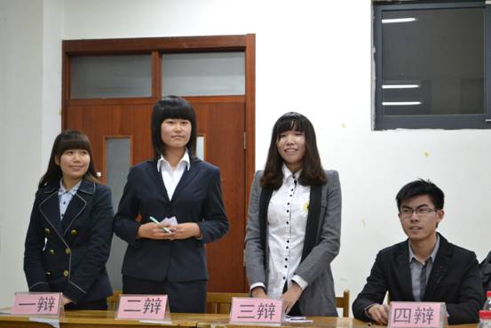 学生会主席王彦国,副主席王哲、张瀚丹、孙中奇,秘书长姜婷,学习部部长马腾,副部长郭欣雨等担任嘉宾,由11级辩论赛主席张鸿越以及部分骨干成员担任评审,并由纪检部成员组成公证小组。