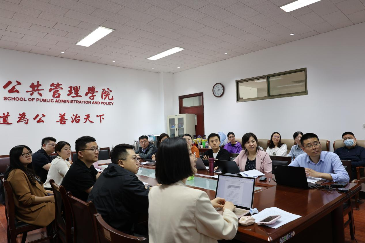 教师教学能力提升工作坊(第8期)。本次活动以“人工智能赋能教育教学”为主题,副院长罗微主持,劳动与社会保障系主任徐宏、城市与土地资源管理系主任韩琭、政府管理系副主任王龙以及各系教师代表参与会议。