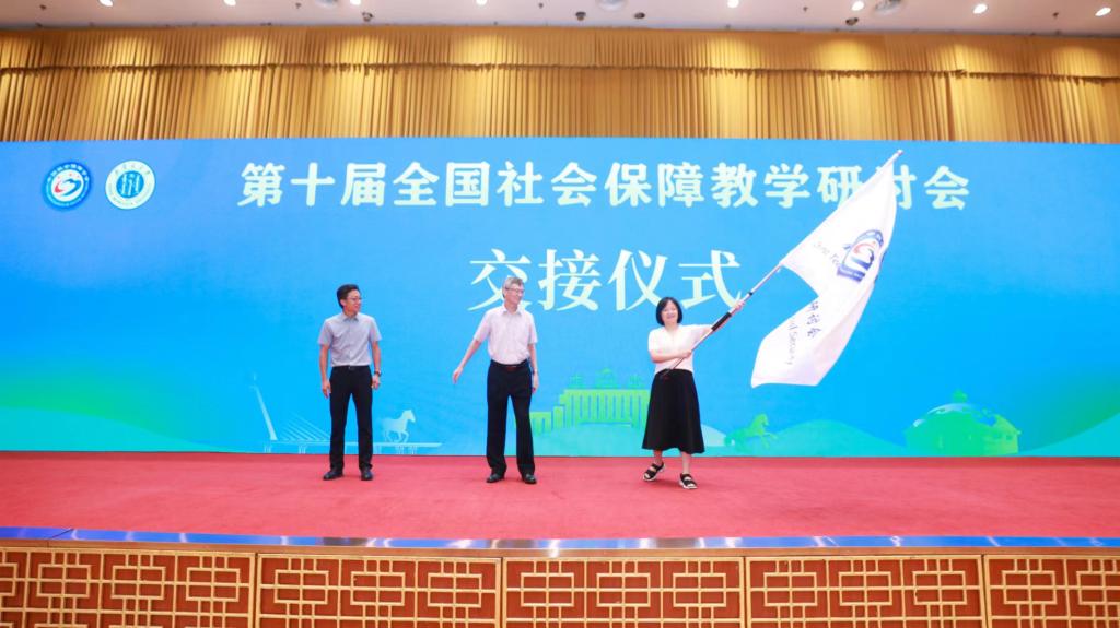 在研讨会闭幕式上,全国社会保障教学研讨会承办单位交接仪式隆重举行。贾海彦从丁建定副会长手中接下会旗,并代表下届承办单位发言。