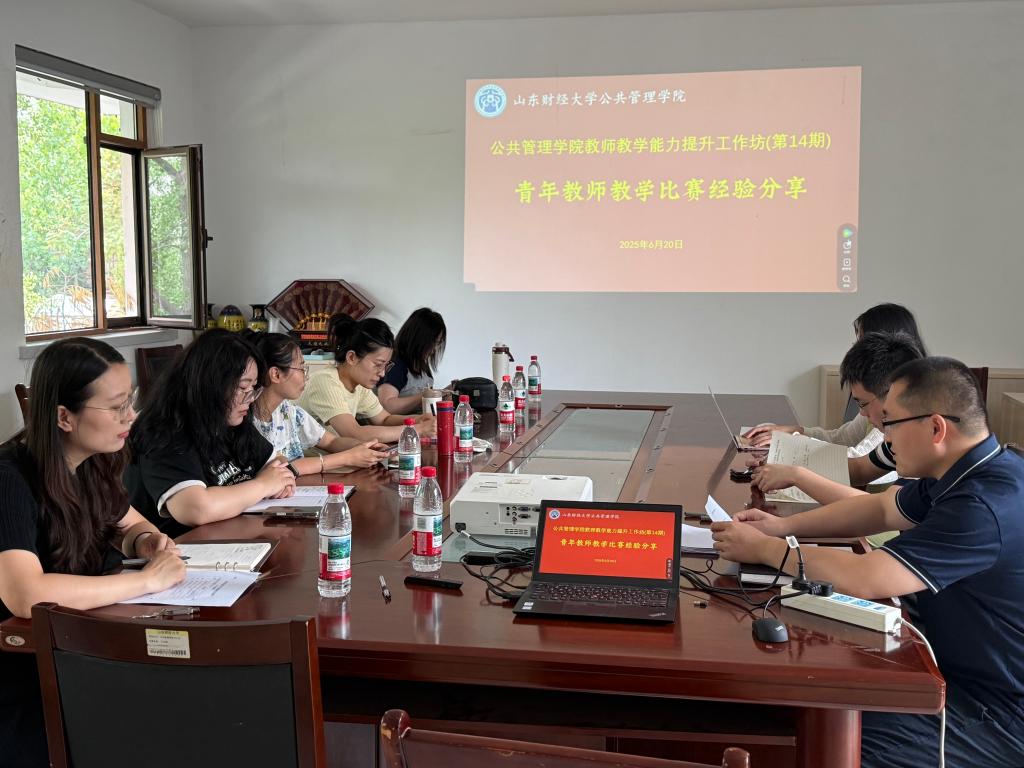 教师教学能力提升工作坊(第14期)在燕山校区举行。学院青年教师、山东省第十二届高校青年教师教学比赛一等奖获得者蒋晓莹作教学比赛经验专题分享。活动由政府管理系系主任邹涛主持。
