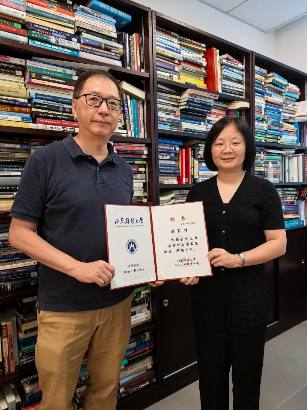 客座教授聘书。双方在国际学术会议举办、课题基金申报、社会调查与数据处理、人才培养等领域达成长期合作意向。与香港大学社会学系青年教师团队进行专题座谈,就社会保险制度与居民福利水平、新市民社会适应研究、家庭追踪调查开展等议题交换经验,并围绕高校学术研究和人才培养的地区差异和合作空间深入讨论。