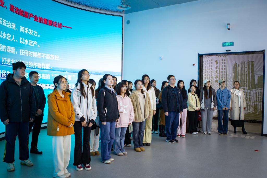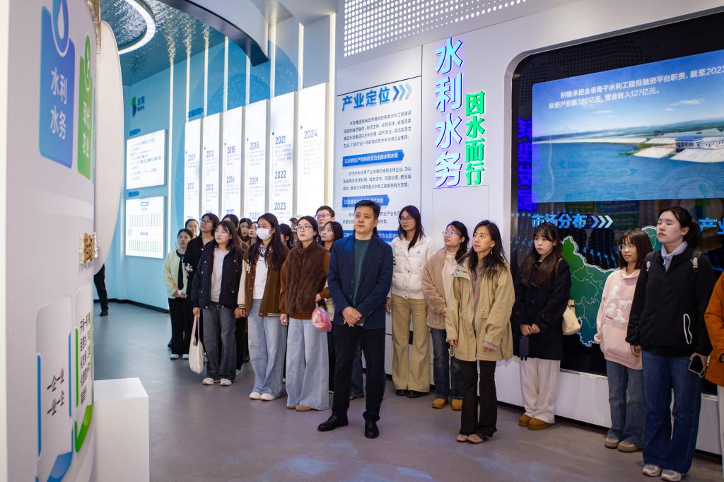 在集团工作人员的陪同下,师生代表一行首先参观了水发集团改革发展展厅,系统了解了集团在水利开发、现代农业、清洁能源等核心领域的发展历程、业务布局与创新成果。通过详实的图文资料与典型案例展示,同学们对集团国产av、行业前沿动态以及国家相关战略部署有了更加直观深入的认知,为未来职业规划积累了宝贵的行业经验。