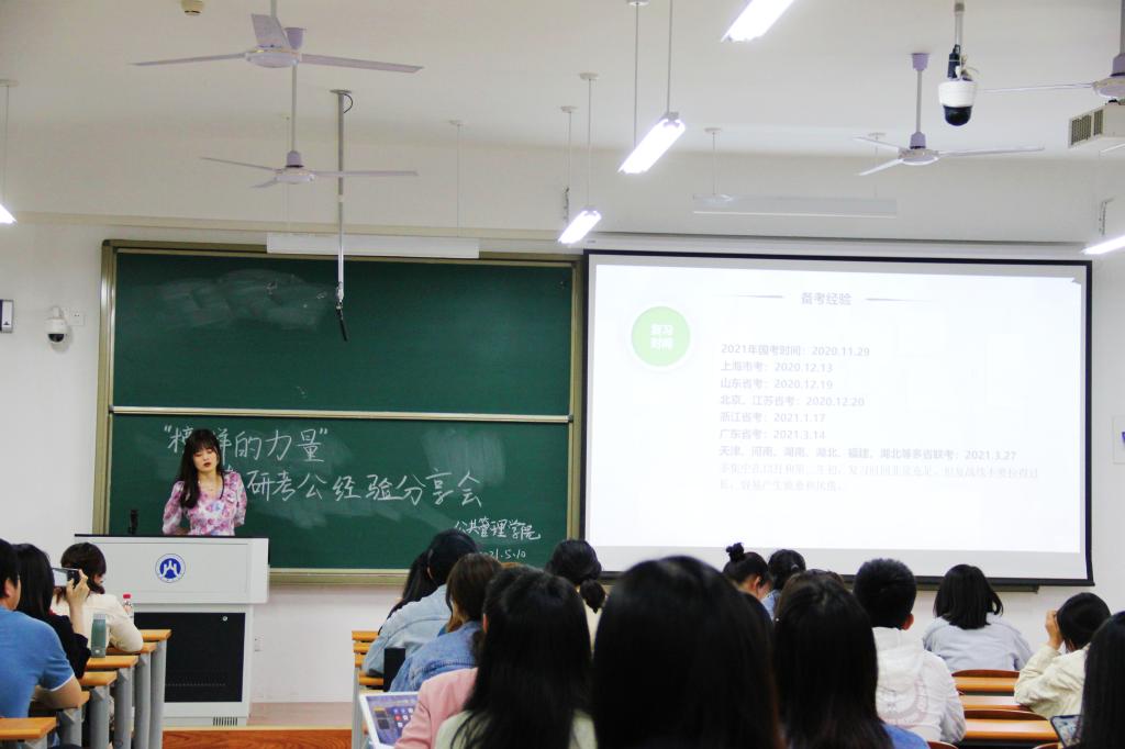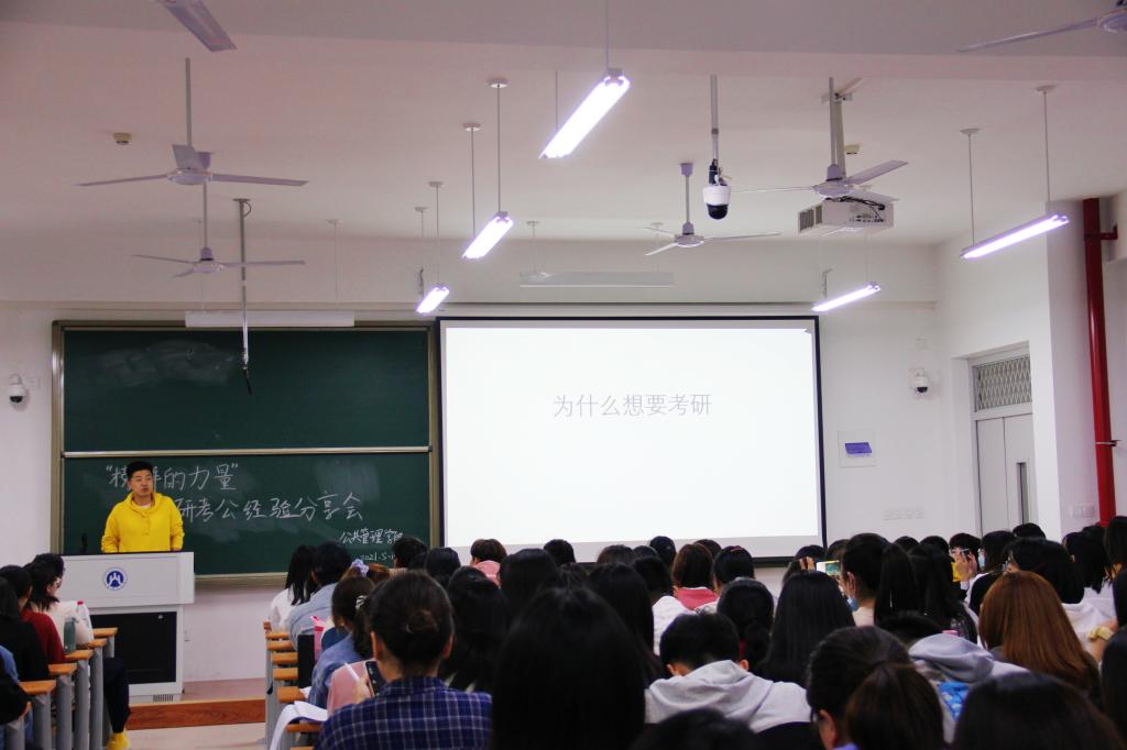 于5月10日下午六点半,在圣井校区8312教室成功举办 “榜样的力量”优秀学长学姐考研考公经验交流会。同学们踊跃报名,积极参加。