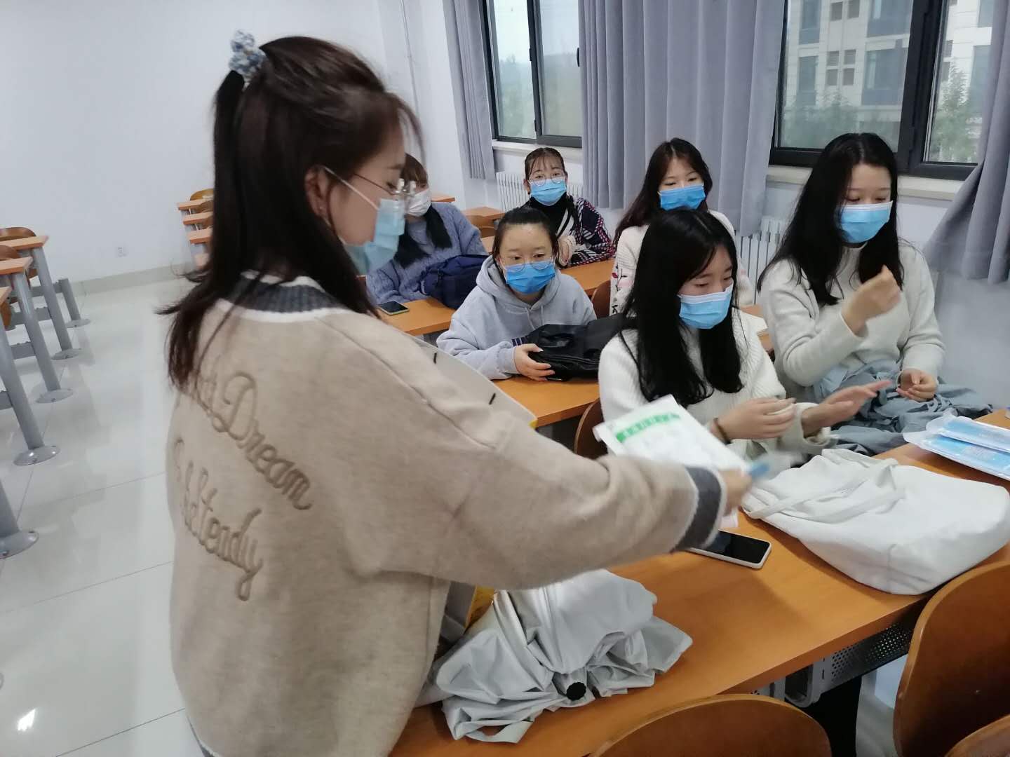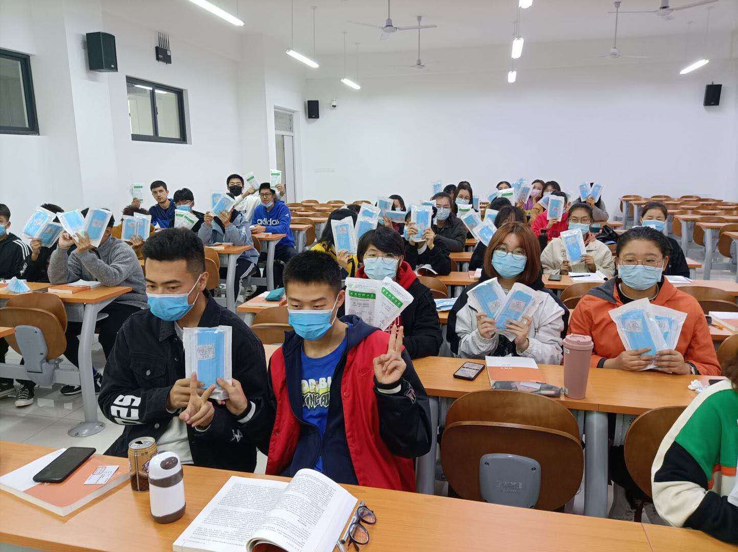 为全体师生发放医用外科口罩