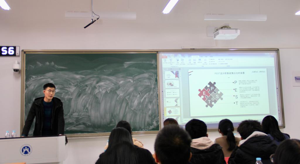 在比赛过程中,各位选手在展示幻灯片时言辞流利,作品别出心裁,图文并茂,各具特色,每一份作品基本上分别从时代背景、政策措施、案例分析、探究原因、实施办法等方面对相应课题进行讲解,体现出了各位选手积极认真的态度。