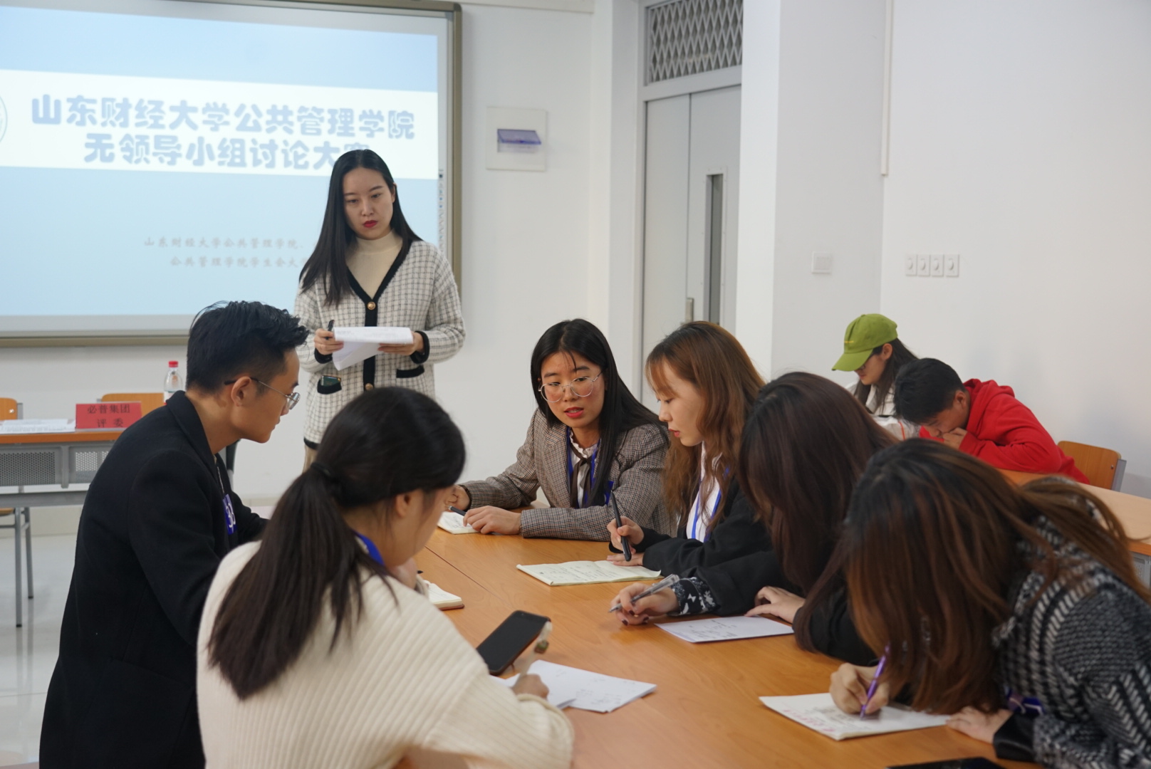 在无领导小组讨论比赛中,每位成员都展现了自己的最佳状态。四组选手在讨论环节积极发言,集众人之智凝聚出色成果。在听取各组讨论结果之后,评委老师对讨论和发言的过程进行了点评并提出了相关建议,选出了12名优秀的同学进行复赛。经过新一轮的激烈竞争,最终评选出优胜选手并颁发奖励。
