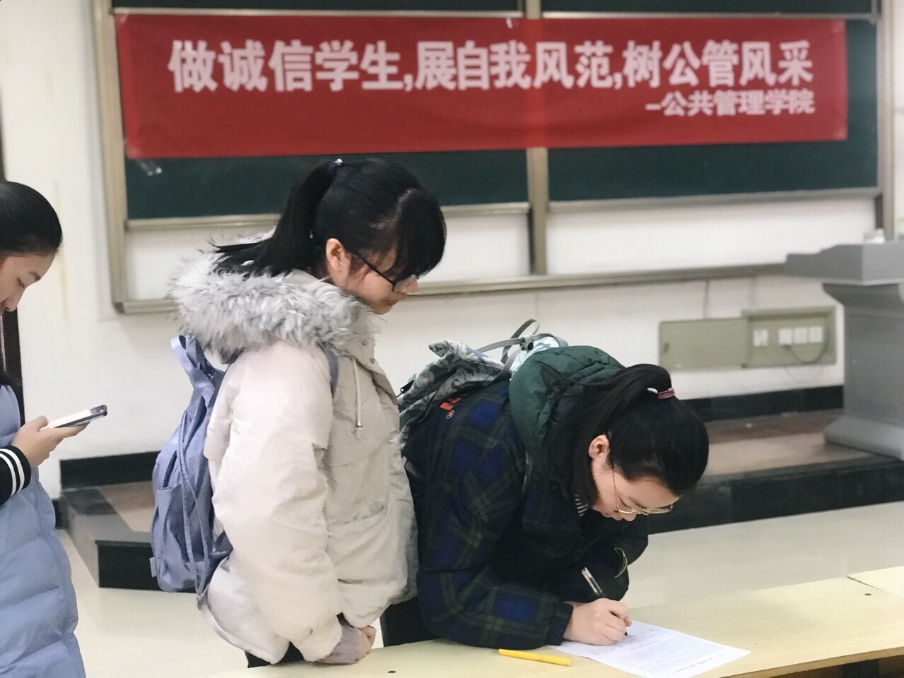 随后,同学们纷纷在“诚信考试承诺书”上签名,并进行诚信考试承诺宣誓。